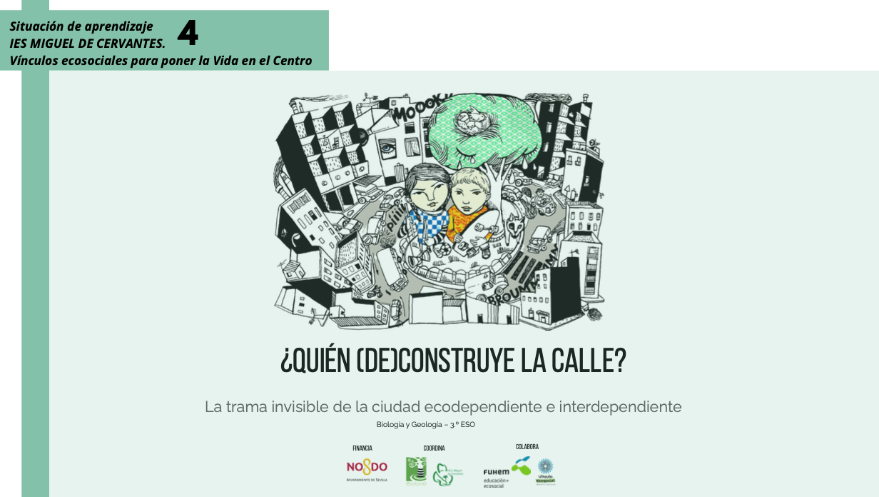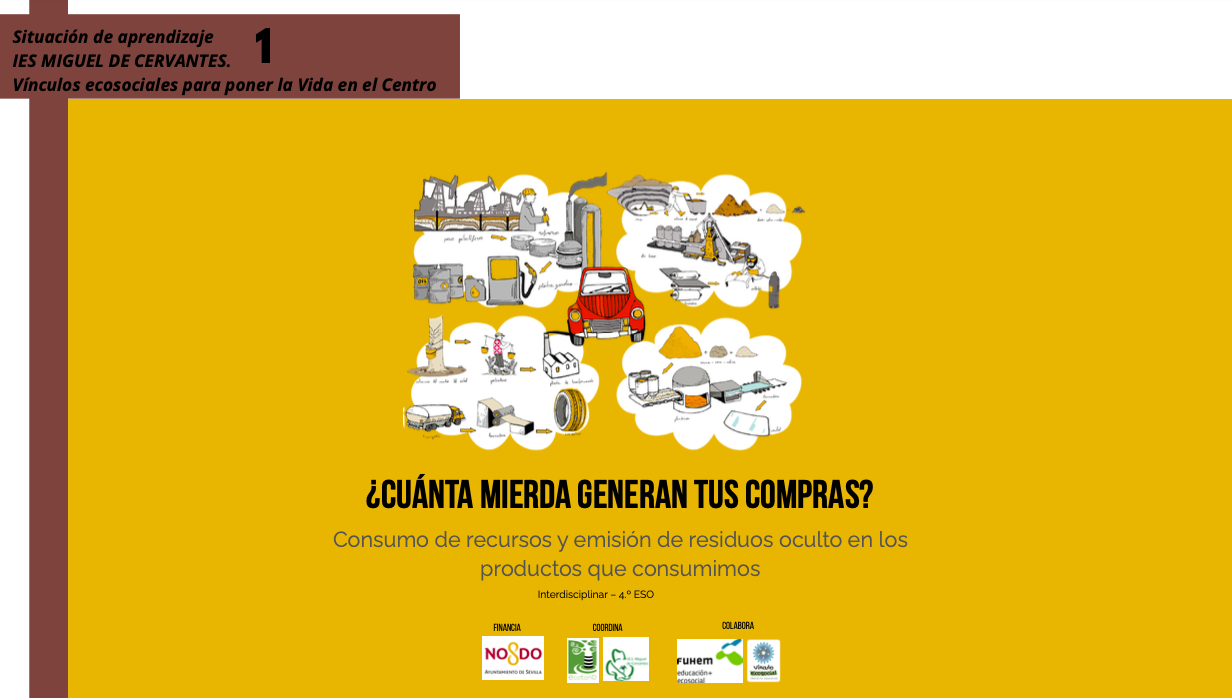 Ya tenemos las cinco situaciones de aprendizaje elaboradas por el profesorado del IES Miguel de Cervantes.Todas reflejan su compromiso con una educación crítica y transformadora y forman parte del proyecto «Vínculos ecosociales para poner la Vida en el Centro», que estamos coordinando en el centro con la financiación del Servicio de Cooperación al Desarrollo del Ayuntamiento de Sevilla y la colaboración de FUHEM.